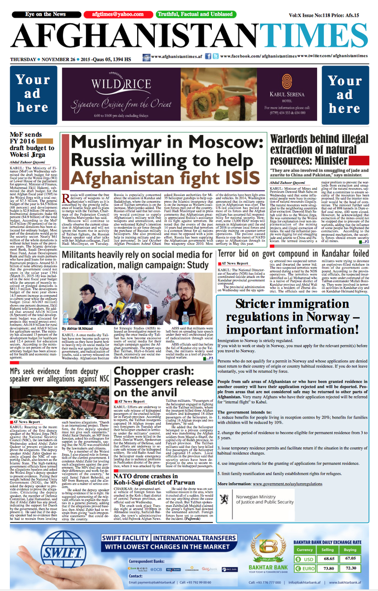 In questi giorni è il governo norvegese ad aver rivolto un messaggio agli afgani, pubblicando un avviso in prima pagina sul quotidiano “Afghanistan Times” per informare sulle novità in merito alla regolamentazione dei permessi di soggiorno in Norvegia. Un avviso che rimanda sulle pagine del sito del governo in cui viene spiegato che le regole per ottenere i permessi di soggiorno sono diventate più severe e che quanti non vedranno riconosciuta la domanda d’asilo verranno espulsi.Per diffondere maggiormente il messasggio, il governo norvegese ha anche realizzato una pagina Facebook chiamata “Stricter asylum regulations in Norway”. Sulle pagine del social network, il governo aggiunge ulteriori informazioni anche in altre lingue.